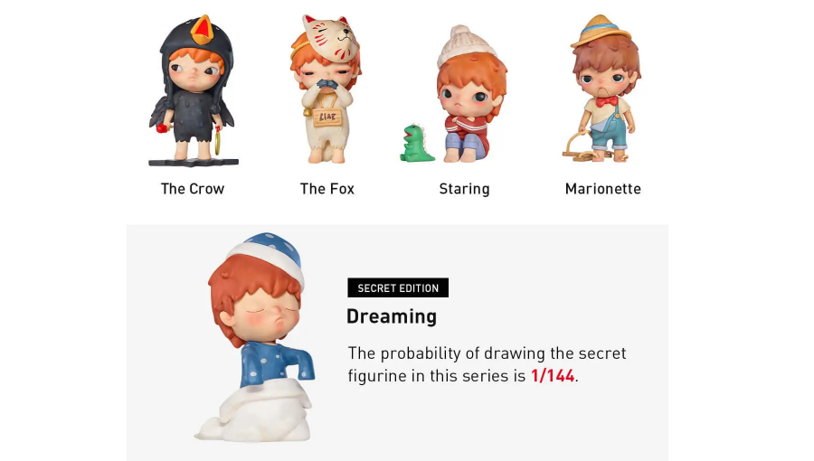 Серія постачається у форматі Blind Box, тобто вміст упаковки залишається сюрпризом до моменту розпакування. Саме цей формат є однією з головних причин популярності POP MART у світі — кожне відкриття коробки перетворюється на окремий колекційний досвід. У серії присутні різні дизайни персонажа, включно з більш рідкісними варіантами, що підвищує цінність фігурок серед колекціонерів і мотивує збирати повну лінійку.