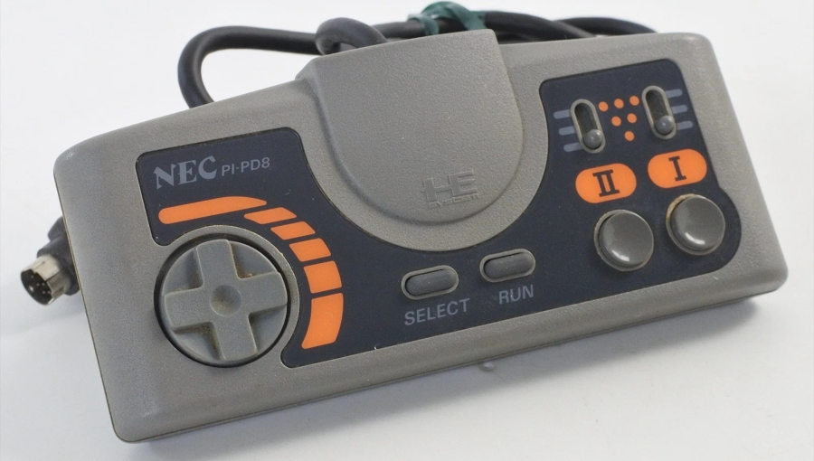 Геймпад NEC PC Engine PI-PD8 Turbo Pad був розроблений спеціально для консолі PC Engine і став одним із найзручніших контролерів свого часу. Його компактна форма ідеально підходить для тривалих ігрових сесій, а кнопки мають чіткий відгук, що особливо важливо для швидких аркадних ігор.