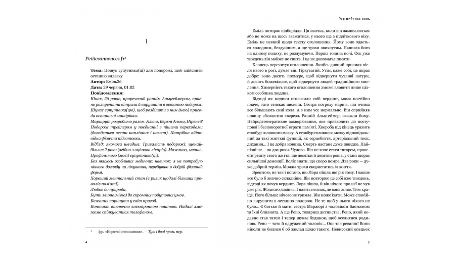 Книга «Уся небесна синь» представлена у якісному друкованому форматі з продуманим дизайном і зручним для читання шрифтом. Видання підходить як для неспішного читання, так і для колекціонування сучасної художньої літератури. Оригінальний переклад зберігає авторський стиль і тонку атмосферу твору.