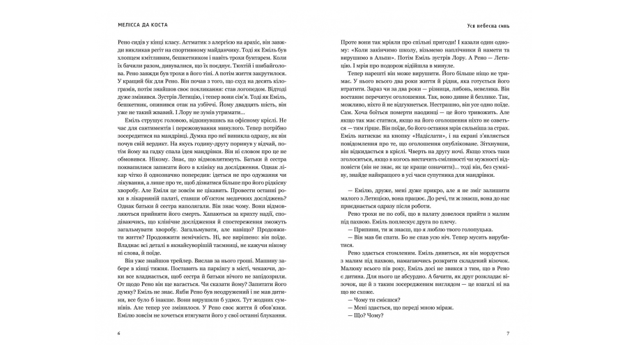 Книга «Уся небесна синь» Мелісси Да Кости — це глибокий, емоційний і світлий роман про прийняття, свободу вибору та справжню цінність життя. Історія, що торкається найтонших струн душі, поєднує філософські роздуми з щирими людськими почуттями, створюючи атмосферу тихої надії та внутрішнього світла. Цей роман став важливою подією в сучасній європейській літературі та здобув визнання читачів у багатьох країнах.