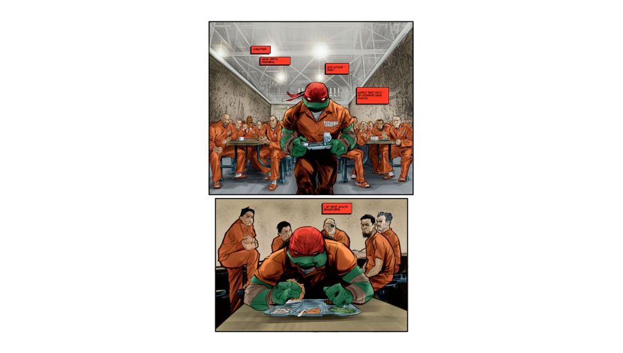 Teenage Mutant Ninja Turtles #1 написаний відомим сценаристом Jason Aaron та ілюстрований художницею Joëlle Jones. Події нової серії починаються після того, як Черепахи розійшлися різними шляхами, і кожен з них намагається знайти власне місце у світі. Перший випуск фокусується на Рафаелі, який опиняється у в’язниці та змушений виживати у небезпечному середовищі, одночасно намагаючись зрозуміти, що сталося з його братами та які нові загрози насуваються. Комікс вирізняється динамічною постановкою сцен, атмосферною графікою та більш дорослим тоном історії, що додає всесвіту Черепах нової глибини.
