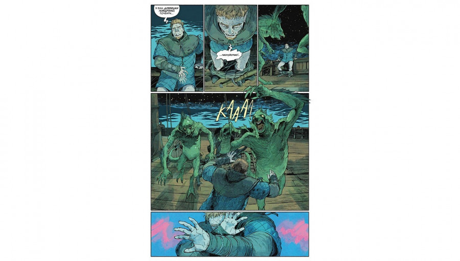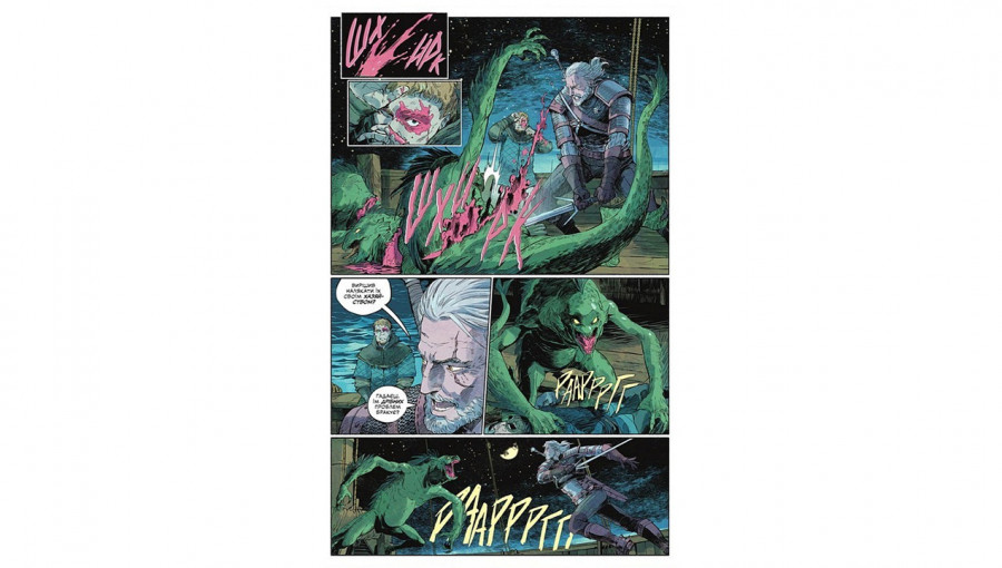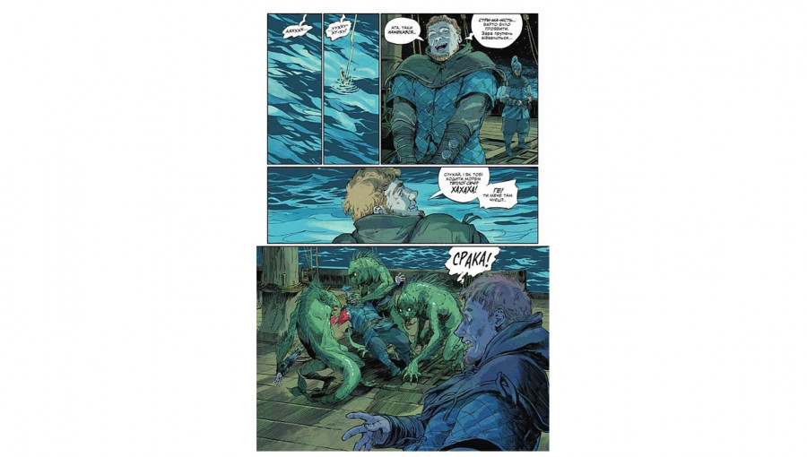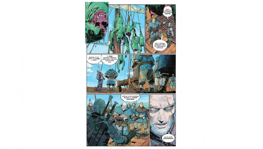 Художнє виконання коміксу «Дикі звірі» ідеально передає суворий дух світу Відьмака. Візуальний стиль вирізняється використанням глибоких тіней, приглушеної палітри та динамічних бойових сцен. Кожен розворот працює на створення ефекту присутності: від холодних морських пейзажів до деталізованого дизайну нових монстрів. Якісне українське видання забезпечує чудову передачу кольорів та чіткість ліній, що робить цей графічний роман не лише цікавим чтивом, а й справжнім артоб'єктом на вашій полиці.