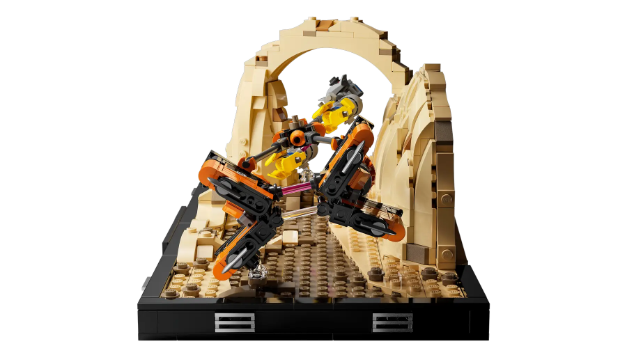 Конструктор Lego Діорама «Mos Espa Podrace» 75380 вирізняється саме атмосферністю. Це не ігровий набір, а сценічний об’єкт, який передає напругу, швидкість і масштаб перегонів. Він має високу колекційну цінність завдяки знаковості сцени та формату діорами, який особливо цінується серед дорослих фанатів Star Wars.