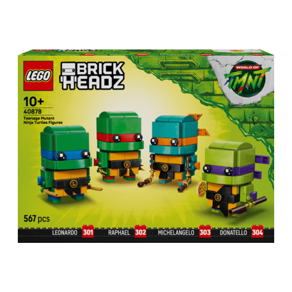 LEGO BrickHeadz 40878 виконаний у характерному стилі серії — компактні фігурки з великими головами та мінімалістичною деталізацією, які при цьому легко впізнаються. Набір присвячений Teenage Mutant Ninja Turtles і включає стилізовані образи головних героїв.