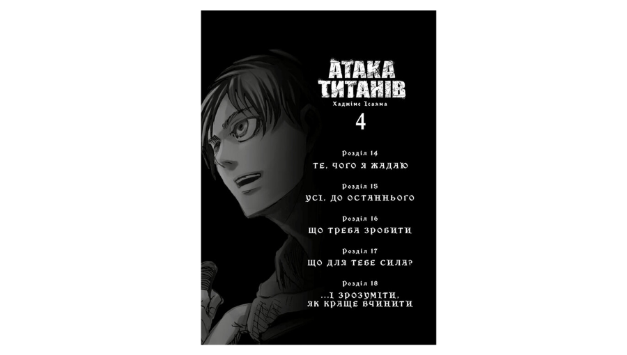 Манґа «Атака титанів». Том 4 від Хаджіме Ісаями — це ключовий етап розвитку культової історії, яка перевернула уявлення про жанр темного фентезі та постапокаліптичної манґи. Саме в цьому томі напруга зростає до критичної межі, а події набувають значно глибшого сенсу, ніж проста боротьба людей проти титанів. Книга зацікавить як фанатів серії, так і тих, хто цінує складні сюжети, драму та несподівані сюжетні повороти.