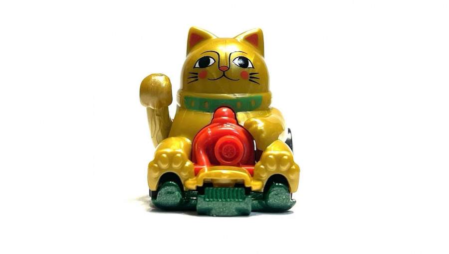 Головна особливість цієї моделі — її функціональність, яка повністю відповідає духу серії Experimotors. Машинка виконана у вигляді фігурки кота Манекі-неко, що сидить на швидкісній платформі. Золотистий корпус відливає металевим блиском, підкреслюючи статус «щасливого» екземпляра. Найцікавіше починається під час руху: завдяки спеціальному механізму, права лапка кота рухається вгору-вниз, відтворюючи той самий жест, яким оригінальний талісман закликає успіх. Деталізація охоплює червоний нашийник та велику монету «кобан», що робить модель автентичною копією культурного символу Японії.