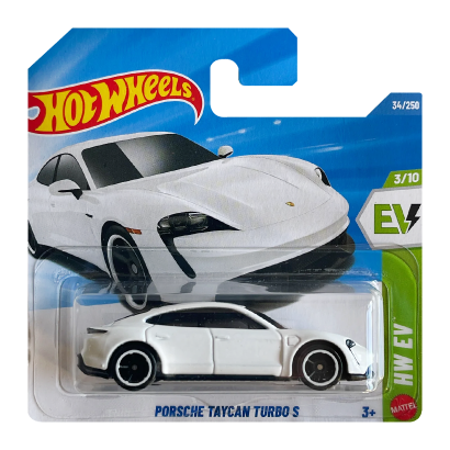 Цей Hot Wheels відтворює фірмові риси Taycan: обтічний силует, широкі форми, спортивну оптику та впізнавані лінії електричного суперкары. Білий колір підкреслює мінімалізм та преміальний характер авто, а точні контури кузова додають реалістичності.