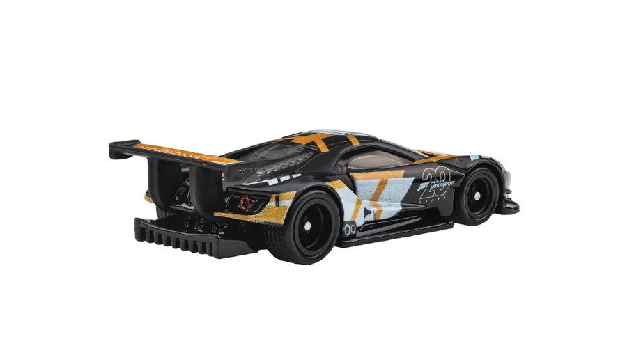 Модель Hot Wheels передає всі ключові деталі: аеродинамічний кузов, масивне антикрило, фари характерної форми та спортивну посадку.