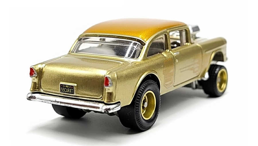 Машинка Premium Hot Wheels ’55 Chevy Bel Air Gasser Thrill Climbers 1:64 JKF27 Gold — це ефектна колекційна модель, натхненна золотою епохою американського дрег-рейсингу. Вона передає характер легендарного Chevrolet Bel Air 1955 року у стилі gasser — з піднятою передньою частиною, потужною посадкою та агресивним силуетом. Цей автомобіль асоціюється з шаленою потужністю, швидкістю та шоу-культурою класичних американських заїздів.