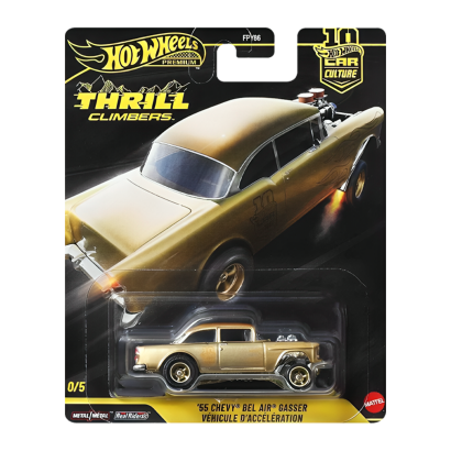 Машинка Premium Hot Wheels ’55 Chevy Bel Air Gasser Thrill Climbers 1:64 JKF27 Gold стане чудовим вибором для тих, хто цінує харизматичні автомобілі та культові образи автоспорту. Вона поєднує історію, яскравий дизайн і колекційну значущість, роблячи цю модель помітним і бажаним елементом будь-якої колекції Hot Wheels.