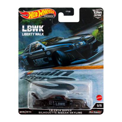 Машинка виконана у масштабі 1:64 та належить до Premium-серії Hot Wheels, що гарантує металевий корпус die-cast, підвищену вагу та якісне фарбування. Образ LB-ER34 Super Silhouette Nissan Skyline передає фірмовий стиль Liberty Walk із широким бодікітом, заниженим силуетом і гоночним характером. Чорне оформлення Chase-версії підкреслює агресію моделі та робить її візуально більш рідкісною. Реалістичні колеса Real Riders, чіткі пропорції та опрацьовані дрібні елементи створюють максимально автентичний вигляд.