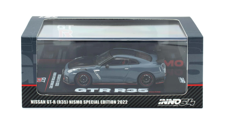 INNO64 Nissan GT-R R35 Nismo Special Edition 2022 (Ніссан GT-R R35 Nismo) 1:64 IN64-R35NSE Grey — це поєднання культового дизайну, японської інженерії та преміальної якості виконання. Машинка повністю сумісна з діорамами 1:64 і стане яскравим акцентом у будь-якій колекції, де цінують деталізацію, автоспортивний характер і справжню JDM-естетику.