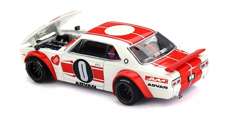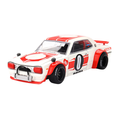 Модель виконана у масштабі 1:64 з максимальною точністю пропорцій і високим рівнем деталізації. Металевий кузов, якісне фарбування та опрацьоване шасі створюють реалістичний вигляд. Білий колір підкреслює класичні форми KPGC10, а стиль Kaido Works V2 додає агресії — розширені арки, занижена посадка, кастомний аерокіт і спортивні диски формують впізнаваний силует. Усі елементи моделі виконані з увагою до деталей, що робить її цінною для колекціонерів.