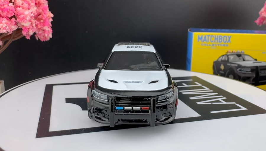 Premium Matchbox 2023 Dodge Charger Pursuit Collectors 1:64 JJW01 Black створена у популярному колекційному масштабі 1:64, який вважається стандартом для багатьох серій Matchbox та інших виробників die-cast моделей. Кузов машинки виготовлений із литого металу, що робить модель міцною, довговічною та приємною на дотик. Саме використання металевого корпусу дозволяє зберегти правильні пропорції автомобіля та передати характерні риси справжнього Dodge Charger.