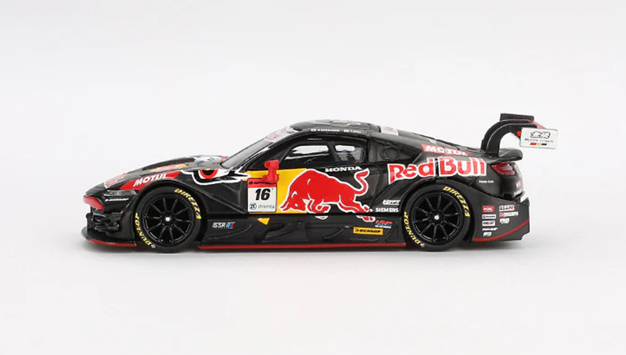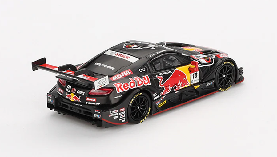 Модель виконана з металу з деталізованим пластиковим елементами, має гумові шини, чіткі логотипи Red Bull та MOTUL, а також неймовірно реалістичну форму кузова Honda NSX-GT Type S. Навіть найменші елементи — від повітряних отворів до заднього антикрила — повторюють справжнє гоночне авто, що брало участь у чемпіонаті Super GT сезону 2022.