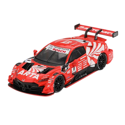 Металевий корпус, точні пропорції, агресивний аеродинамічний обвіс GT500, деталізовані диски, салон і ліврея #8 ARTA. Червоний колір підкреслює спортивний характер моделі.
