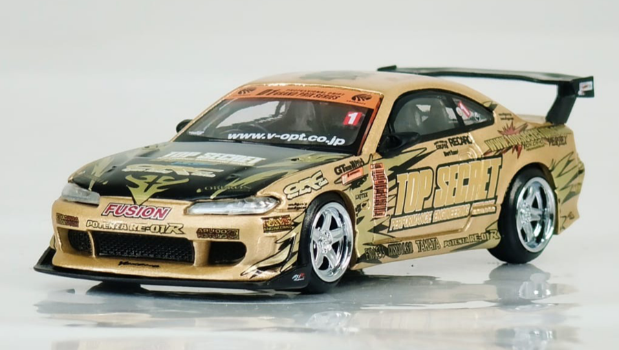 Модель виконана з металу високої якості, має реалістичний кузов, диски, шини з гуми та дрібні елементи Top Secret. Кожна деталь передає дух дрифтових перегонів — від широкого обвісу до знаменитих золотих акцентів.
