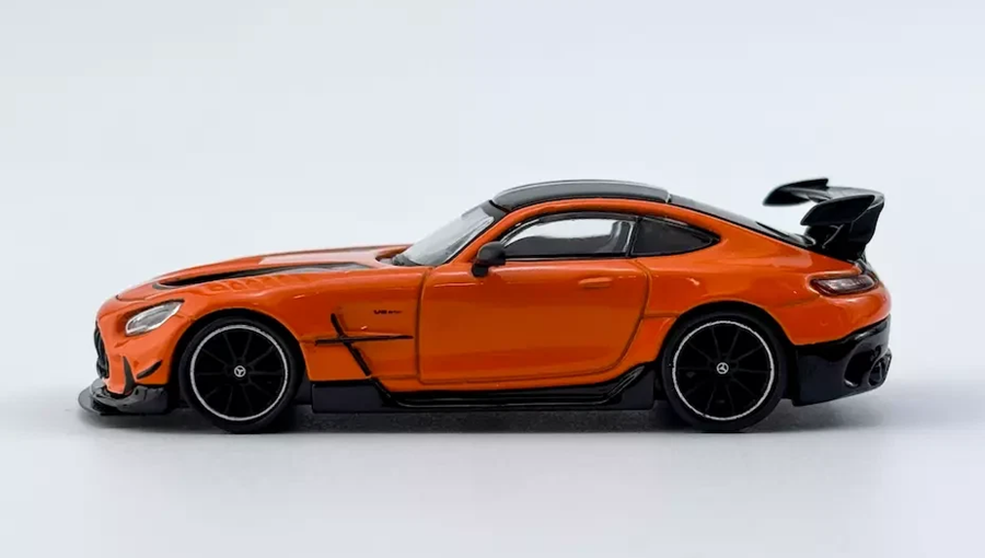 Ця машинка виділяється серед інших моделей завдяки своїй високій деталізації, точному відтворенню Mercedes-Benz AMG GT Black Series і агресивному оранжевому кольору. Вона виглядає більш реалістично і привабливо порівняно з іншими моделями цієї серії.