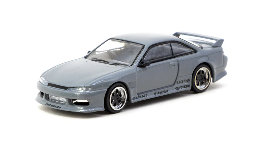Серія GLOBAL64 від Tarmac Works виділяється високою якістю виконання та увагою до дрібних деталей. Модель Nissan Silvia S14 виготовлена з металевого сплаву з пластмасовими елементами, має чітко промальований кузов у сірому кольорі з фірмовим обвісом VERTEX. Реалістична оптика, дзеркала та пропорції кузова максимально наближені до справжнього автомобіля. Колеса з гумовими покришками додають відчуття преміальності, а рівне фарбування без надлишкового глянцю робить машинку привабливою для колекціонерів.
