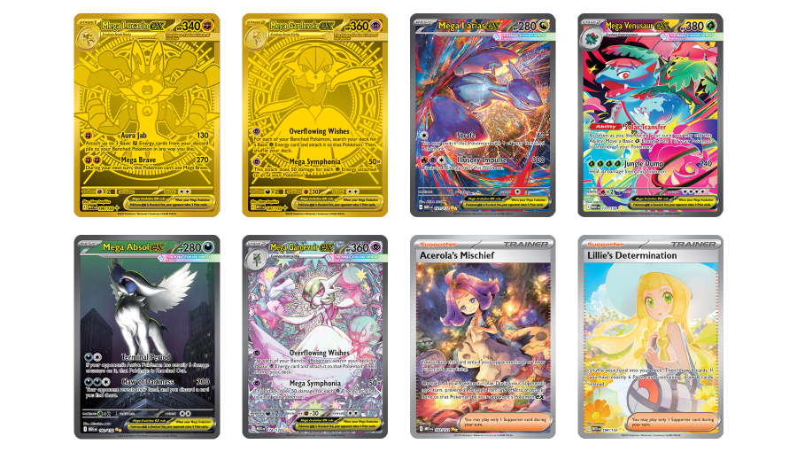 Серія Mega Evolution відома своїм фокусом на потужні, еволюціоновані форми покемонів, які стали іконами Pokémon TCG. Карти з цієї лінійки часто мають виразний арт, динамічний дизайн і високу впізнаваність серед фанатів. Вони цінуються як за ігровий потенціал, так і за колекційну привабливість, особливо серед шанувальників класичних поколінь Pokémon.