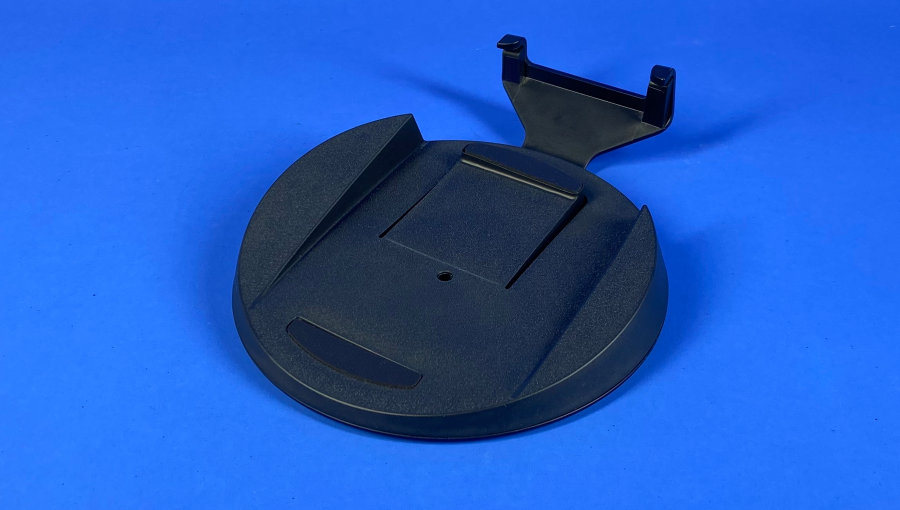 Конструкція виконана з міцного пластику чорного кольору, який гармонійно поєднується з дизайном PS5. Нижня частина має антиковзку основу, що забезпечує надійну фіксацію на різних поверхнях — від столу до тумби під телевізор.