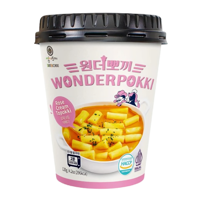 Токпокі Wonderpokki Кремові Розе в Стакані 120g — це сучасна інтерпретація популярної корейської страви tteokbokki у форматі швидкого приготування. Соус «розе» поєднує вершкову м’якість із делікатною томатно-пряною ноткою, створюючи збалансований смак без екстремальної гостроти. Зручний стакан дозволяє приготувати страву за лічені хвилини — ідеально для дому, офісу або вечора з іграми.