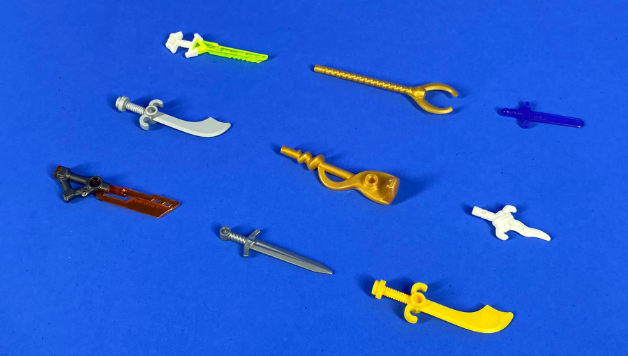 Елементи набору виготовлені з фірмового високоякісного ABS-пластику, який витримує навантаження та зберігає форму роками. Дизайн кожної одиниці зброї опрацьований так, щоб її можна було органічно інтегрувати в будь-яку серію — від класичної City до насичених подіями фентезійних світів.