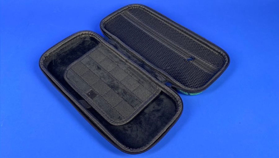 Мягкая внутренняя отделка бережно фиксирует консоль, предотвращая скольжение. Есть отдельные отсеки для картриджей и аксессуаров — всё, чтобы твои игры всегда были под рукой.