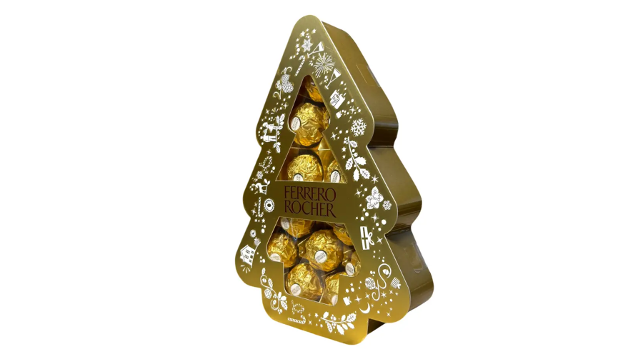 Ferrero Rocher Ёлка Новогодние 150g — это изысканный подарочный набор, который сочетает элегантность, традиции и настоящее удовольствие от вкуса. Внутри праздничной упаковки в форме ёлки тебя ждут легендарные конфеты Ferrero Rocher — гармоничное сочетание нежного орехового крема, хрустящей вафельной оболочки и обжаренного фундука в молочном шоколаде. Это символ роскоши, который дарит радость каждому празднику.