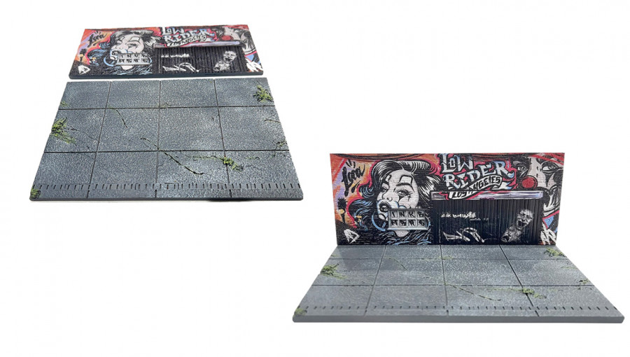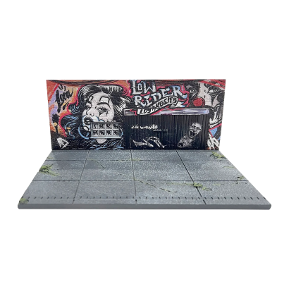 В отличие от универсальных диорам без тематики, эта модель имеет чёткий стиль — street art и lowrider культура, что делает её более уникальной и узнаваемой. Это не просто подставка, а полноценная часть коллекции, которая усиливает визуальное впечатление от моделей.