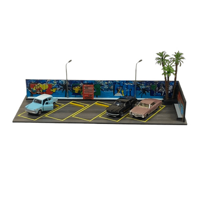 Диорама без моделей автомобилей. Машинки, изображённые на фото, используются исключительно для демонстрации возможного вида экспозиции и примера размещения моделей в масштабе 1:64. В комплект входит только сама диорама, без дополнительных аксессуаров или транспортных средств.