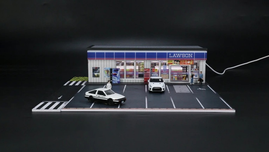 G-Fans LAWSON Building Diorama добавляет коллекции совершенно другой уровень презентации. Она создаёт миниатюрное городское пространство, где автомобили выглядят так, будто находятся на настоящей улице. Благодаря этому даже одна машинка может выглядеть как часть небольшой истории.