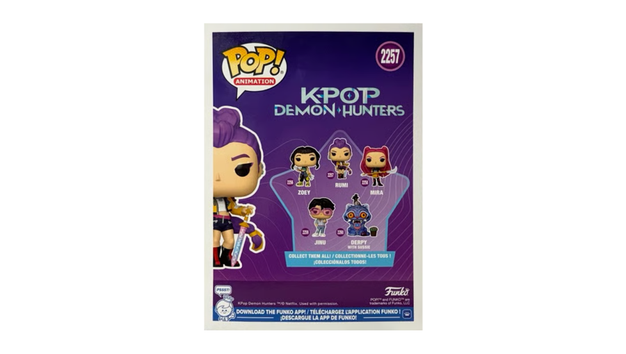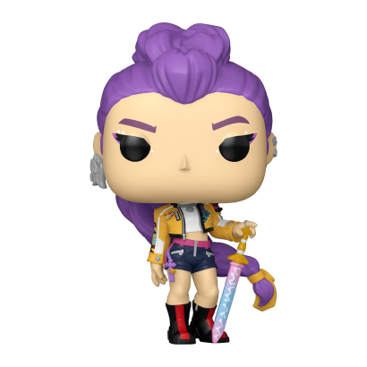 Руми представлена в характерном стиле Funko POP с большой головой и минималистичными, но выразительными деталями. Образ персонажа вдохновлён вселенной KPop Demon Hunters, сочетая сценическую харизму, боевой настрой и яркие элементы дизайна. Высота фигурки составляет около 109 мм, что выгодно выделяет её среди стандартных моделей и делает более заметной на полке, в витрине или на рабочем столе.