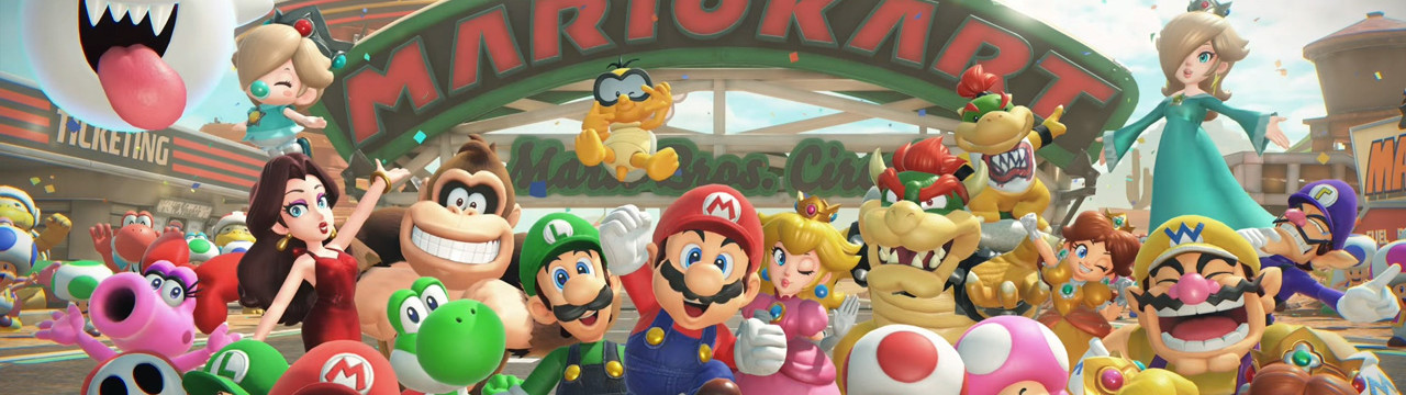 Игра содержит 32 уникальные трассы, разделенные на восемь кубков. Половина из них — это абсолютно новые локации, такие как Waluigi Pinball или Tick-Tock Clock, а другая половина — тщательно отобранная классика из версий для SNES, N64 и GameCube. Выбирайте своего фаворита среди 12 легендарных персонажей, каждый из которых обладает уникальными характеристиками скорости и управляемости, а также набором индивидуальных картов.