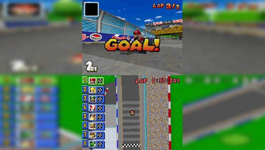 Двойной экран: Пока на верхнем экране кипит основная борьба, нижний служит интерактивной картой, где можно видеть позиции соперников, приближение опасных объектов и оставленные ловушки.
