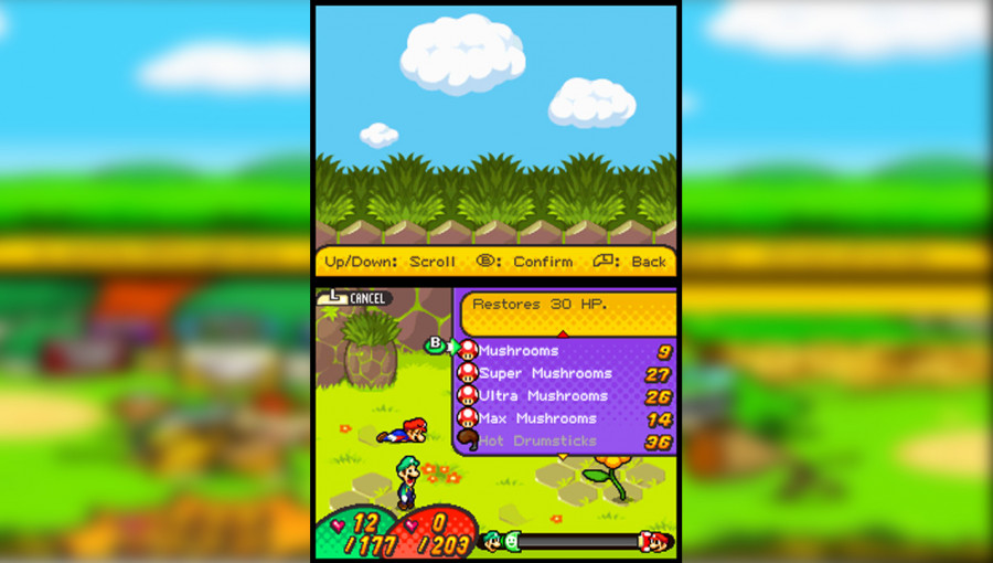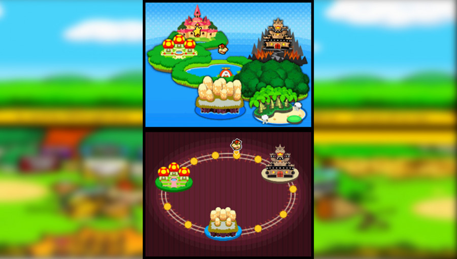 Два экрана — два мира: На нижнем экране вы управляете Марио и Луиджи внутри Боузера (2D-платформер), а на верхнем — самим Боузером в большом мире (RPG с изометрическим видом).