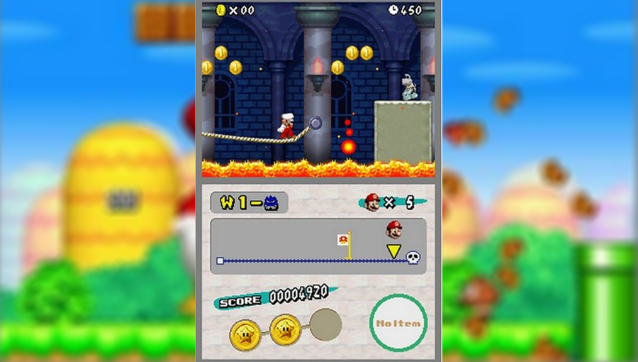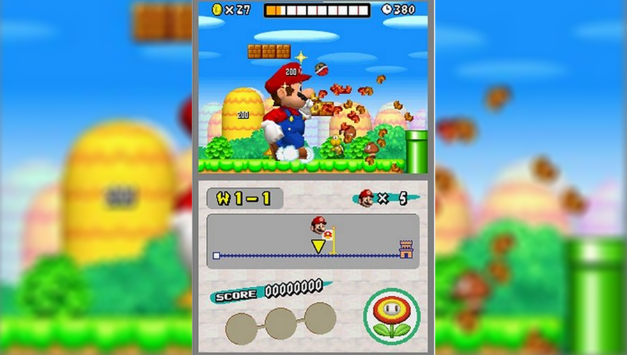 New Super Mario Bros. мастерски использует архитектуру консоли с двумя экранами. Пока на верхнем дисплее разворачивается основное действо — бег, прыжки и борьба с врагами — нижний сенсорный экран выполняет роль информационного центра и стратегического резерва. Здесь вы видите свой прогресс на уровне, количество собранных монет и, что самое важное, запасной бонус. Одним нажатием на тачскрин можно активировать сохраненный гриб или огненный цветок именно в тот момент, когда это больше всего нужно. Кроме того, игра предлагает уникальные мини-игры, полностью управляемые стилусом, добавляя геймплею интерактивности, которой не было ни в одной предыдущей части серии.