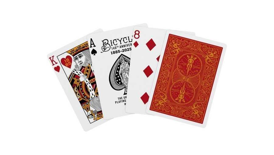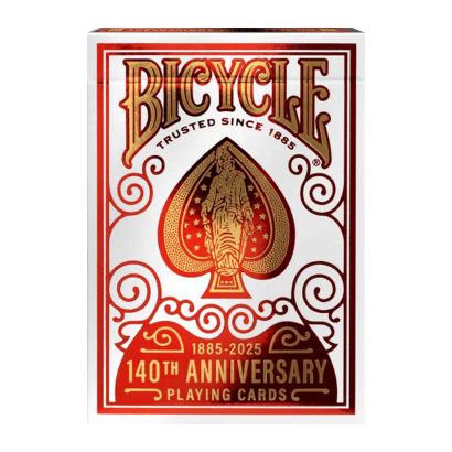 Карты Bicycle 140th Anniversary — это особая лимитированная колода, созданная в честь 140-летия легендарного бренда Bicycle. Она сочетает классическое американское качество с изысканным дизайном, который сразу выделяется среди стандартных карт. Это не просто инструмент для игры — это стильный аксессуар для коллекционеров, кардистов и тех, кто ценит эстетику в деталях.