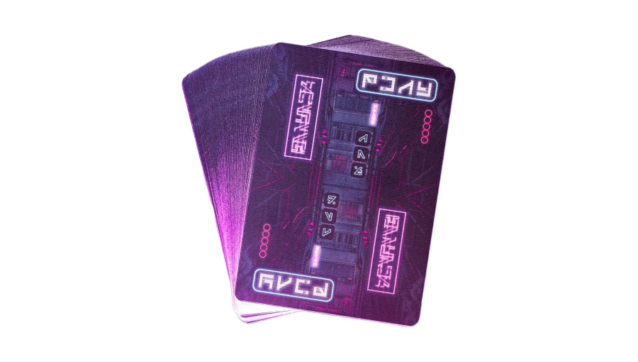 Карты выполнены в фирменном стиле Cyberpunk Cybercity — урбанистические мотивы, цифровые паттерны и глубокие контрастные оттенки.