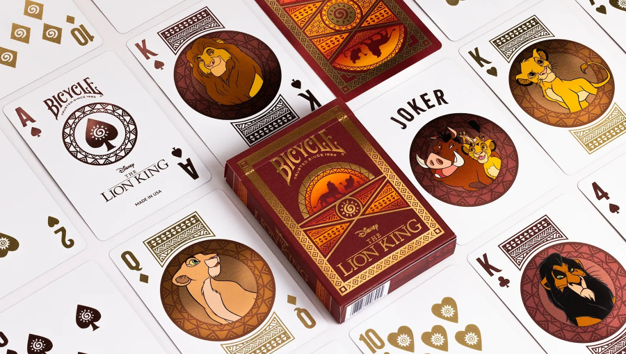 Колода Bicycle Disney The Lion King отличается продуманным дизайном. Оформление коробки сразу передаёт атмосферу мультфильма, а иллюстрации на картах отражают характер и настроение ключевых персонажей. Изображения не перегружены деталями, но при этом выглядят ярко и узнаваемо, что делает колоду привлекательной как для игры, так и для коллекционирования.
