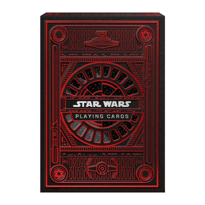 Колода Bicycle Star Wars Dark Side Red оформлена в красно-чёрной гамме, подчёркивающей атмосферу Тёмной стороны. Каждая карта содержит детализированные иллюстрации таких персонажей, как Дарт Вейдер, Император Палпатин и другие антагонисты сериала, а фон и рамки выдержаны в стильном минималистичном дизайне с готическими элементами.