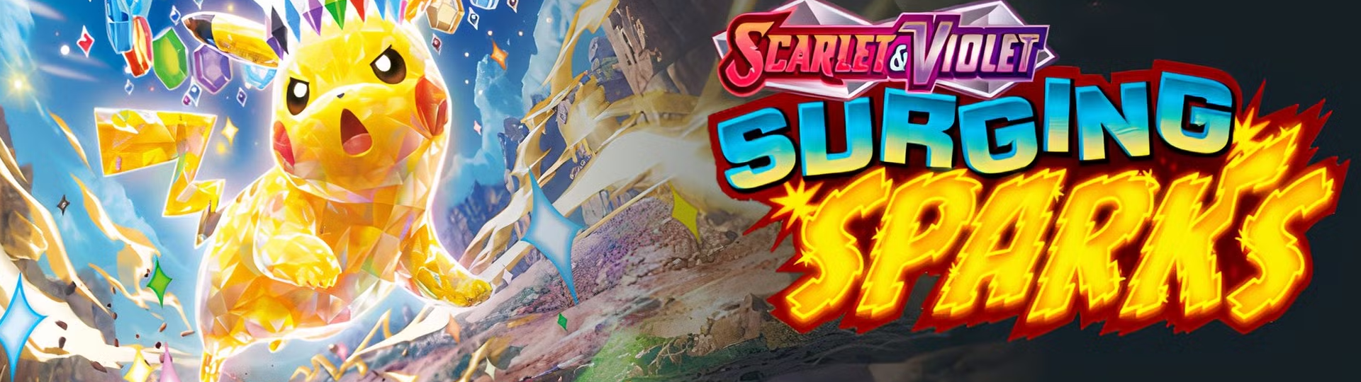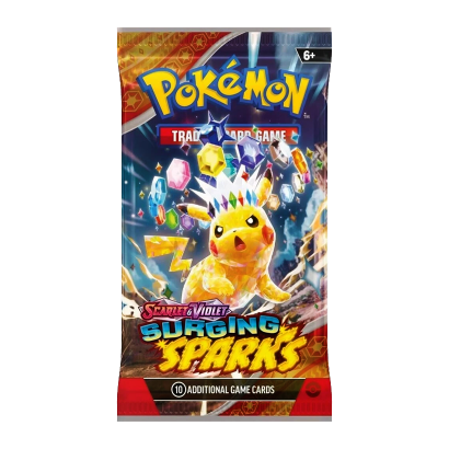 Расширение Surging Sparks продолжает развитие линейки Scarlet & Violet, предлагая свежий контент, новые иллюстрации и разнообразные карты, которые можно использовать как в коллекции, так и в игровых колодах Pokémon TCG.