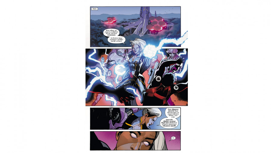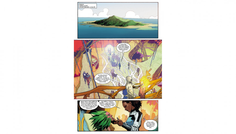 Графика в этом издании заслуживает отдельного внимания. Благодаря детализированному контуру, над которым работал опытный Джерри Алангилан, и динамичному рисунку Лейнила Фрэнсиса Ю, каждая страница выглядит как кинематографический кадр. Выразительные лица, насыщенная палитра цветов и продуманный дизайн локаций Кракоа делают чтение истинным эстетическим удовольствием. Качество печати украинского издания четко передает каждый штрих, сохраняя аутентичность оригинального стиля Marvel и передавая масштабность битв и напряженность диалогов.