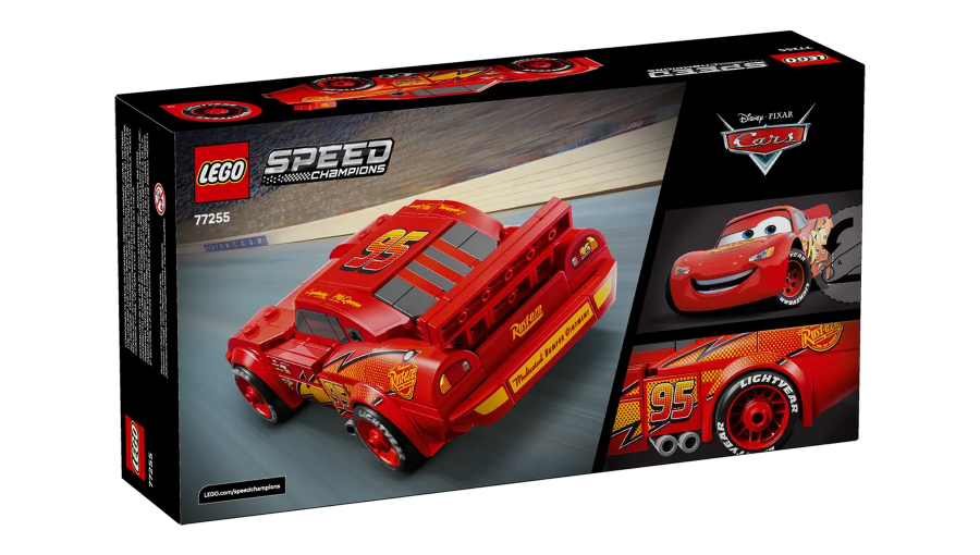 Модель LEGO Speed Champions 77255 точно передаёт фирменный облик Молнии МакКуина: ярко-красный кузов, характерные наклейки, аэродинамические элементы и спортивные пропорции. Конструктор создан с учётом стиля гоночного автомобиля, но адаптирован под формат LEGO, сохраняя баланс между детализацией и прочностью конструкции. Все элементы надёжно фиксируются, поэтому модель подходит как для активной игры, так и для демонстрации на полке.