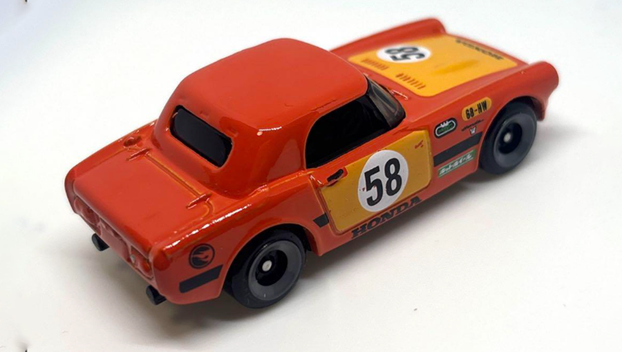 Детализация: каждый элемент машинки, от корпуса до колес, воссоздает оригинальный вид Honda S800. Задняя часть с аэродинамическими элементами и характерные линии кузова делают модель максимально реалистичной.