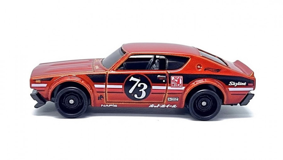 Данная модель Nissan Skyline 2000 GT-R выполнена с исключительным вниманием к деталям, что свойственно базовым сериям Hot Wheels. Литой корпус из качественного металлического сплава окрашен в насыщенный оранжевый цвет, который мгновенно привлекает взгляд в любом боксе или на треке. Особое внимание дизайнеры уделили геометрии кузова: характерные расширители арок, спойлер и передняя часть «акулий нос» воссозданы максимально достоверно. Детализация оптики и решетки радиатора подчеркивает аутентичность модели, а контрастные декали на бортах добавляют ей духа настоящего тюнинга. Прочное шасси и надежные колеса обеспечивают отличное качение, что делает этот Skyline подходящим не только для полки, но и для активных заездов.