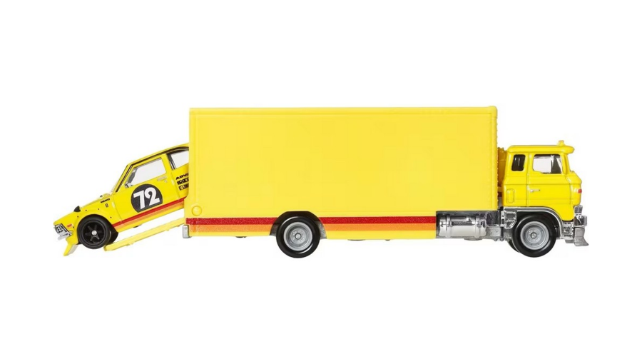По сравнению со стандартными машинками Mainline, Hot Wheels Team Transport 1:64 выигрывает за счёт детализации, материалов и общего впечатления. В отличие от одиночных моделей, этот набор предлагает завершённую концепцию — автомобиль + транспортер, что делает его значительно интереснее для коллекции. Среди других версий Team Transport именно вариант с 1972 Toyota Corolla Levin выделяется JDM-стилем и яркой подачей.