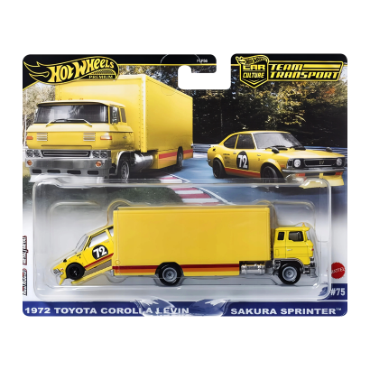 Машинка Premium 2шт Hot Wheels 1972 Toyota Corolla Levin / Sakura Sprinter Team Transport 1:64 JBM34 Yellow — удачное сочетание коллекционной ценности, культового дизайна и премиального качества. Такой набор дарит эмоции, дополняет коллекцию и подчёркивает любовь к настоящим автомобильным легендам. Если хочешь пополнить свою полку яркой и узнаваемой моделью Hot Wheels — этот вариант действительно заслуживает внимания.