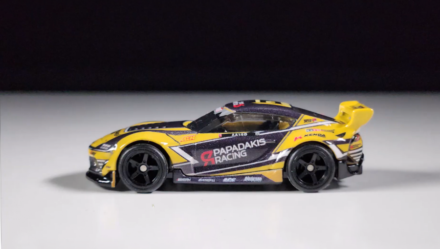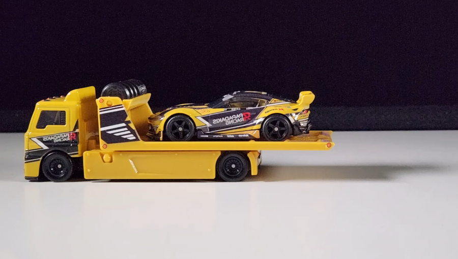 Каждая модель в этом сете создана по самым высоким стандартам серии Premium. Использование технологии Metal/Metal™ означает, что и корпус, и шасси автомобилей изготовлены из металла, придавая им приятный вес и ощущение солидности. Главная звезда — '20 Toyota GR Supra — поражает точностью линий: от агрессивной передней оптики до аэродинамических изгибов спойлера. Fleet Street, как её верный спутник, не уступает в детализации, обладая функциональной платформой для перевозки авто. Обе модели оснащены легендарными колесами Real Riders™ с настоящими резиновыми шинами, имеющими автентичный рисунок протектора. Покраска в солнечно-желтый цвет выполнена с многослойной глубиной, подчеркивающей каждый миллиметр дизайна, а детальная прорисовка мелких элементов (логотипов, фар, решеток) делает эти модели идентичными реальным прототипам.