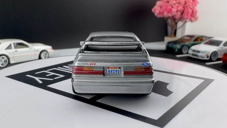 Серебристый цвет подчёркивает технический, почти инженерный характер Mustang SVO, а геометричные линии кузова, фирменные бамперы и спортивный силуэт точно передают стиль середины 80-х. Серия Power Trip делает акцент на харизматичных и мощных автомобилях, и эта модель идеально вписывается в концепцию.